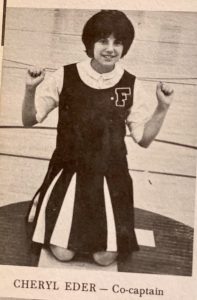 My friend, Cheryl Eder Chodun, who was a cheerleader and was on the homecoming court, is still my friend, six or seven decades later. Here’s her note about being a cheerleader. Cheryl went on to become a Channel 7 TV, news reporter.