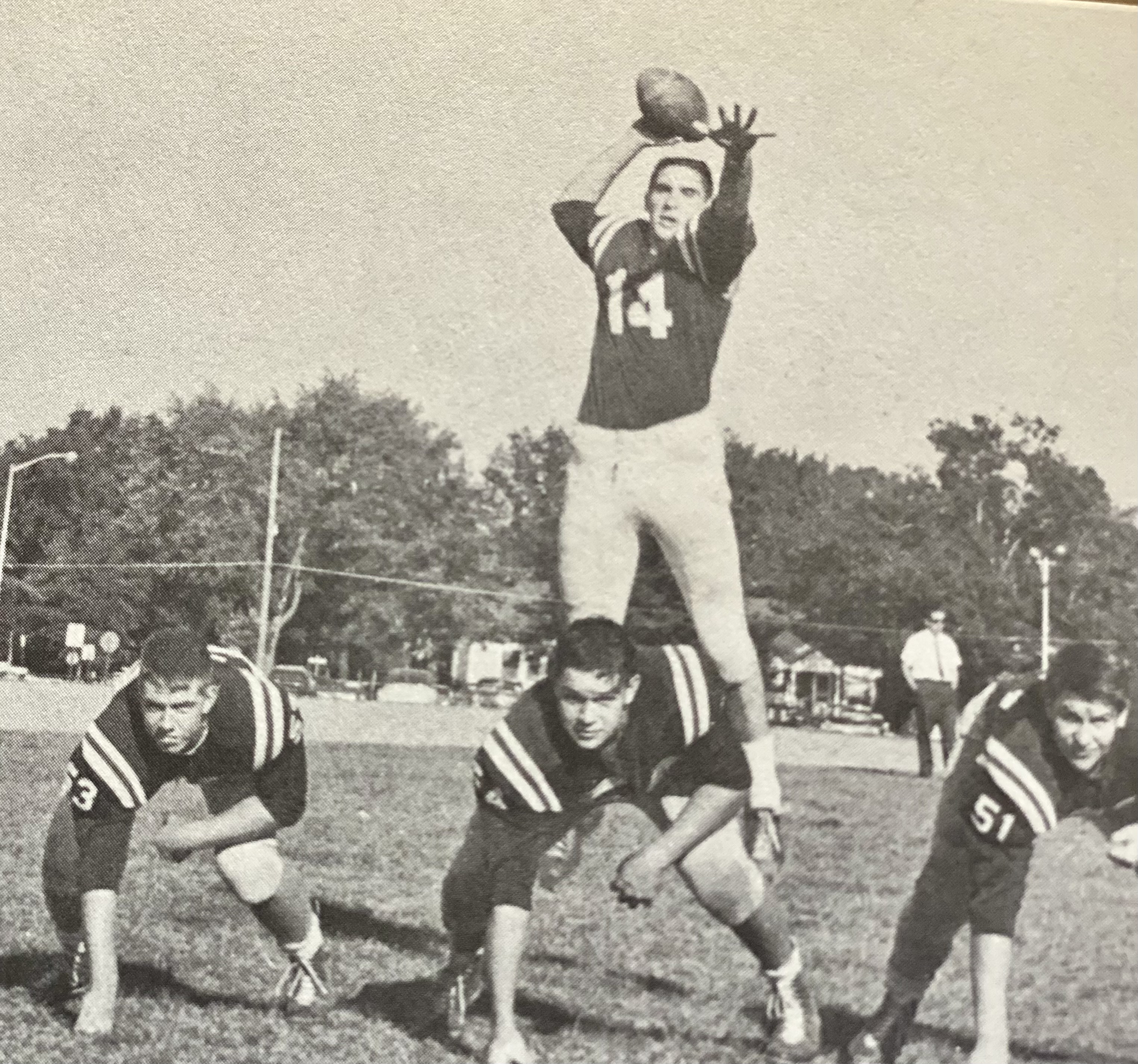 Today I remain friends with Nick Luxon and John Mattson, who can be seen in this picture protecting the quarterback, Bob Super, (that’s his real name). The third guy in the photo is our friend Jeff McDonald, who died a few years ago succumbing to the disease of alcohol.